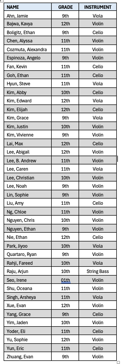 Congratulations to the following Johns Creek High School Orchestra Students!